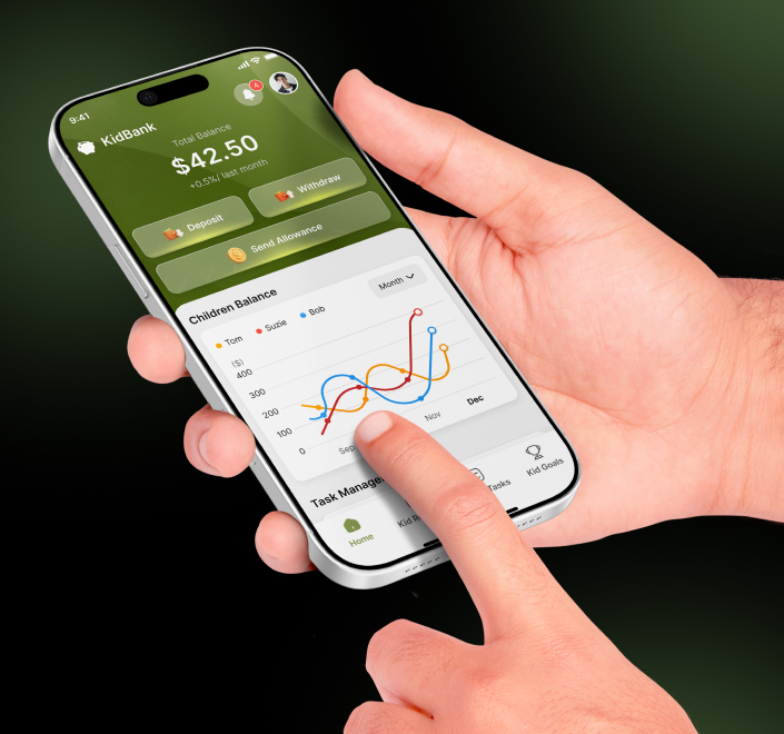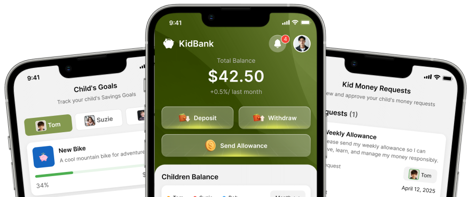 Kidbank combines real money tools, education, and parental controls to help families build healthy financial habits together.