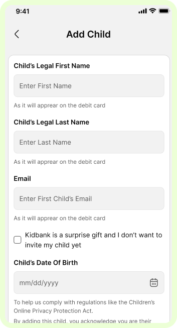 We believe financial confidence should start early. Kidbank makes money simple and engaging for kids, while giving parents the tools to guide, support, and stay in control every step of the way.